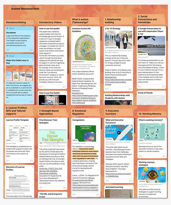 In response to learning about effective Learning Support for Autistic ākonga in their community, Carolyn, Vicky, and Gail developed a Padlet with evidence-based resources designed to support teacher understanding of Autistic ākonga.